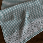 Striscia da tavola in lino a quadretti tradizionali impreziosita da un raffinato bordo in pizzo di cotone, questa striscia da tavola combina stile classico e qualità artigianale.