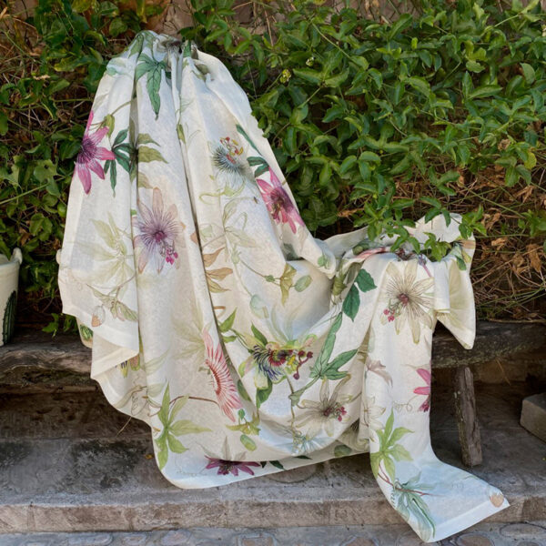 Immergiti nell’atmosfera estiva con la nostra tovaglia di lino Granadilla, impreziosita da vivaci disegni di fiori e frutti della passione. Eleganza e freschezza si fondono per una tavola luminosa e frizzante.